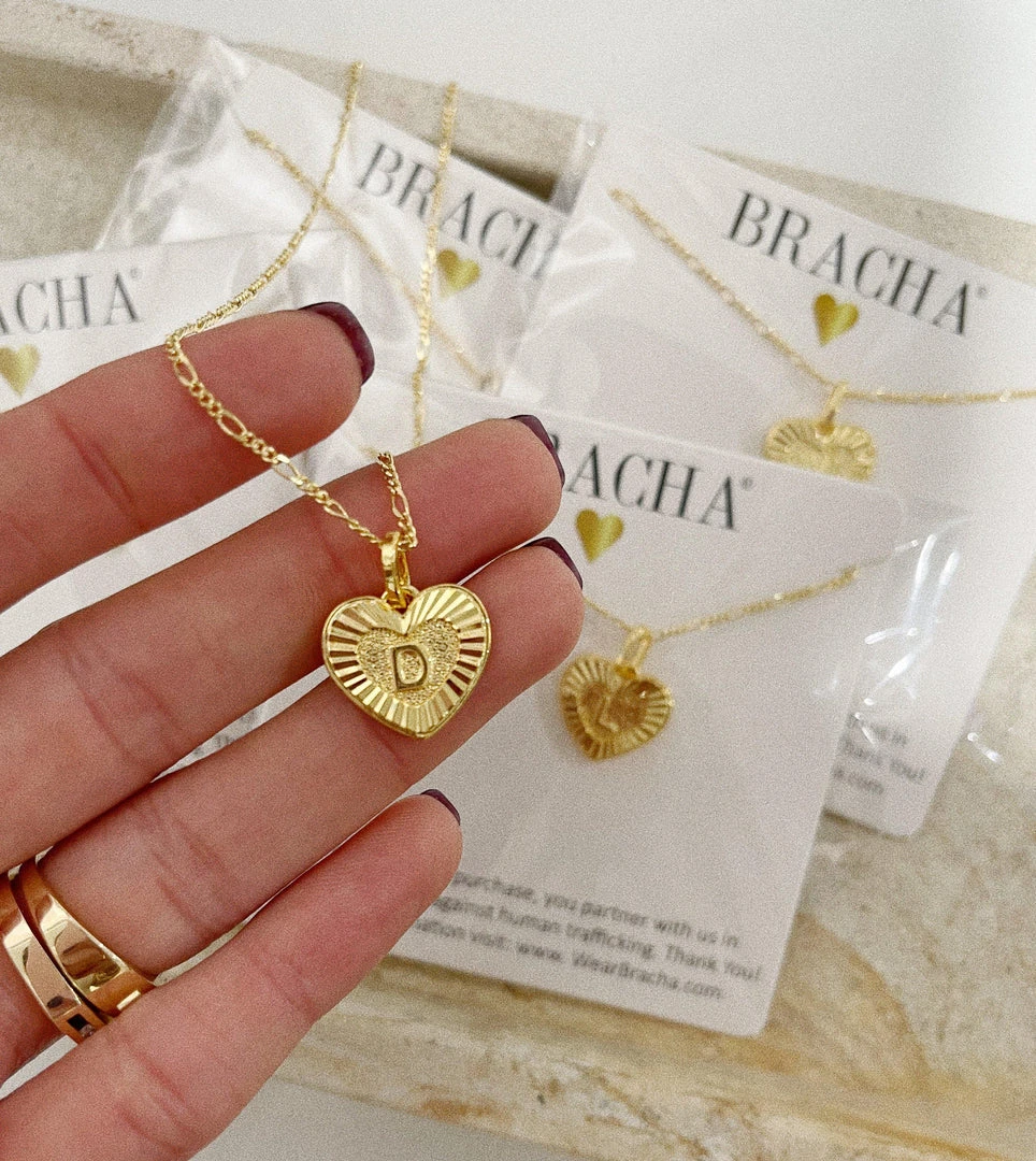 Same golden beauty as our O.G initial card but sweet and cute with our new mini Heart shape. Perfect for you or your Mini! This Bracha initial necklace is fabulous paired alone or even better layered up!