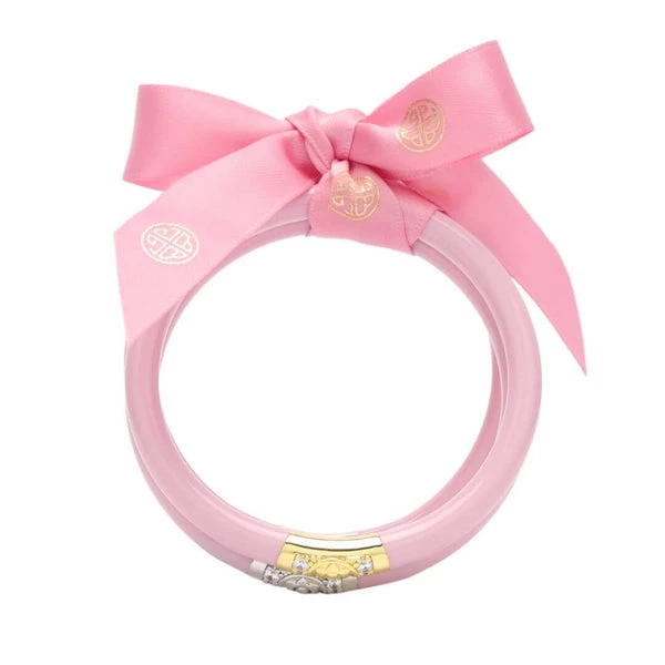 Like daughter, like mother. We know, this is backwards, but little girls did have them first. Now big girls can enjoy the beauty of our famous pink All Season Bangles. Sealed with our Three Kings bead, the set of three peony pink bangles is perfect for spring and summer and wonderful paired with gold, silver, or rose gold AWB®.