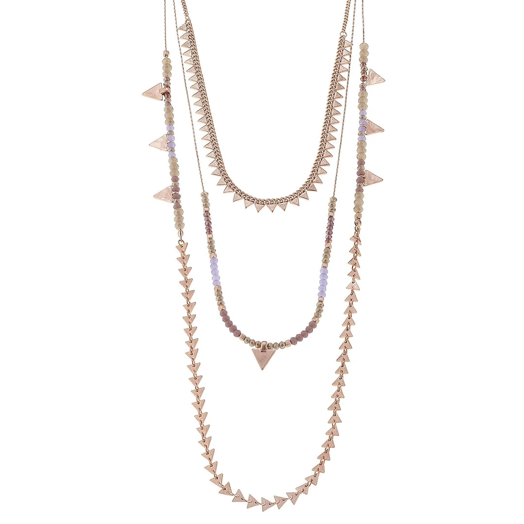 Canvas Jewelry ‘3 Row Triangle Bead’ Necklace – Rose Gold/Lavender