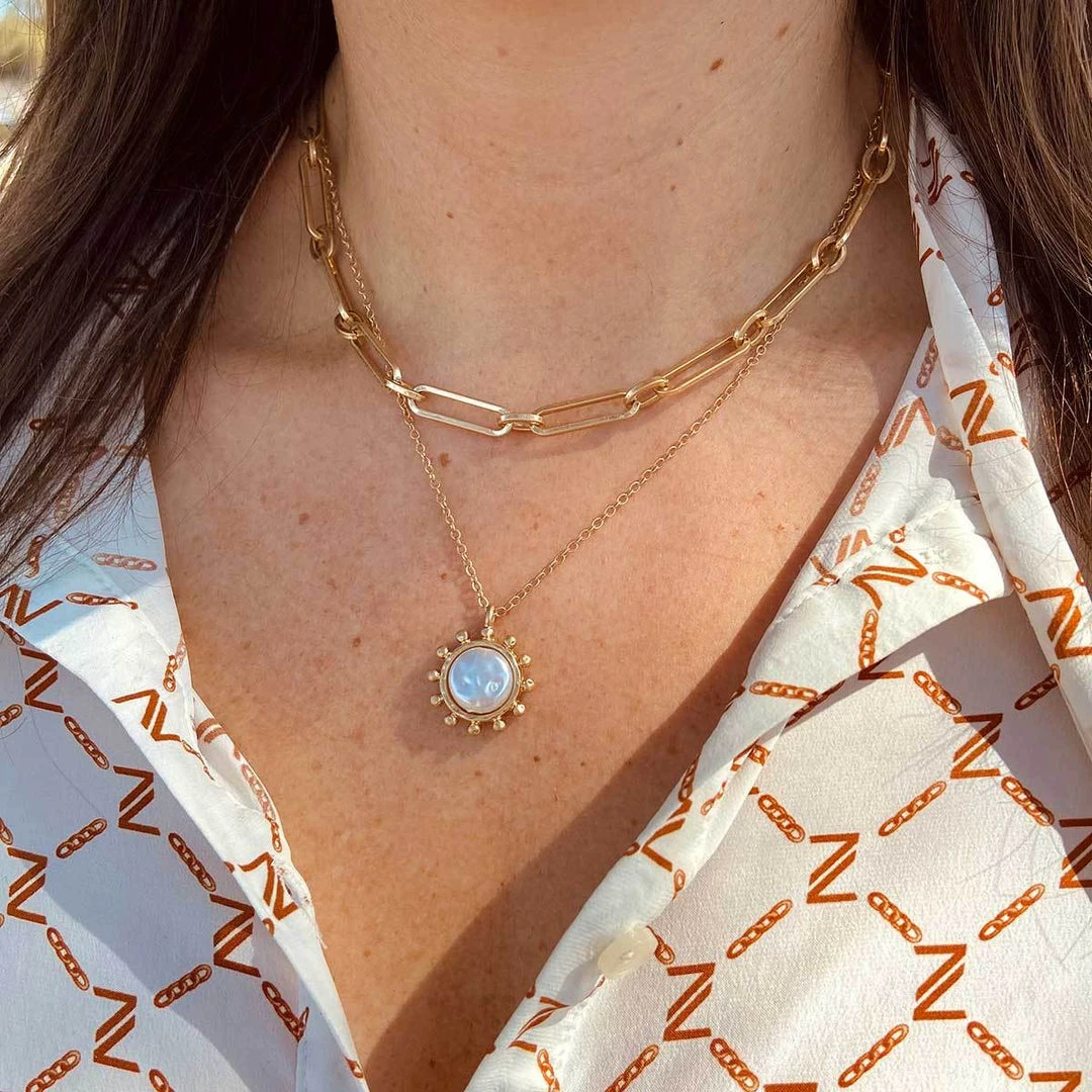 Add instant sophistication to any outfit with our Amelie Coin Pearl Necklace in Worn Gold. Wear alone or layer with your favorite necklaces for on-trend, effortless style.