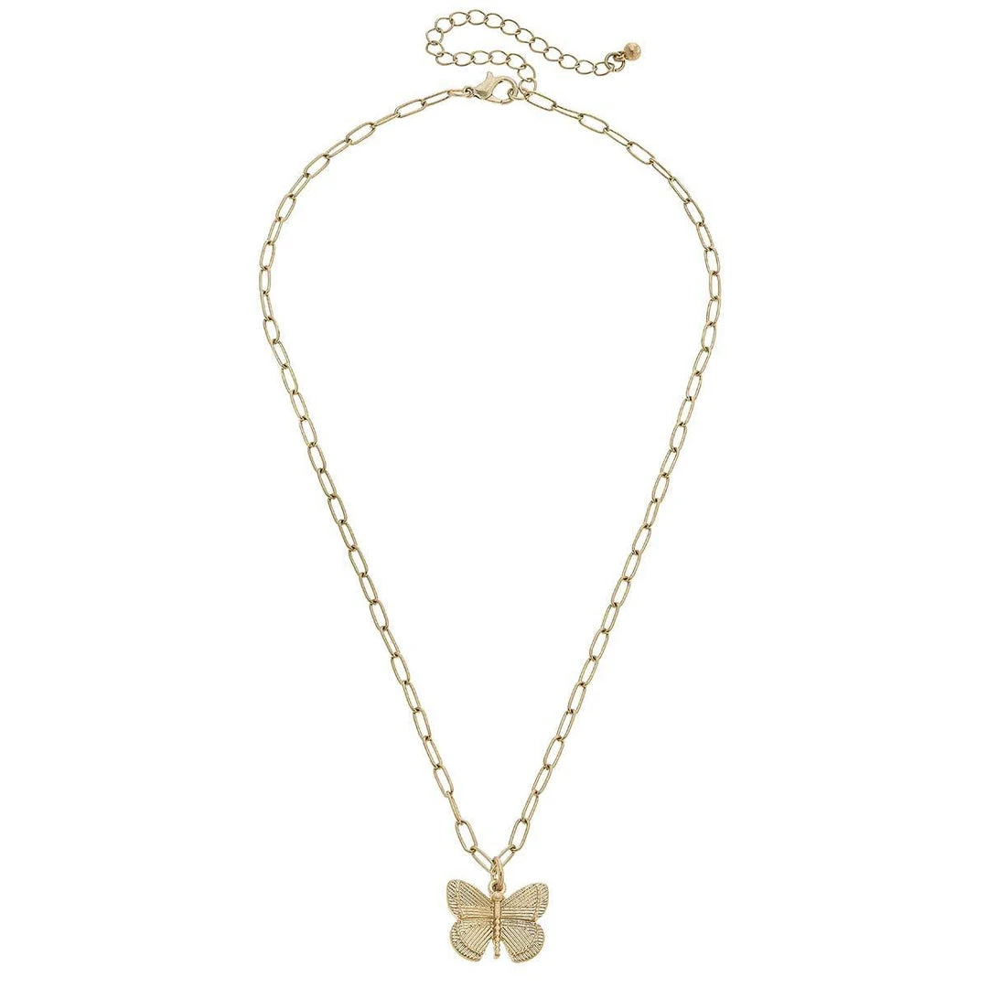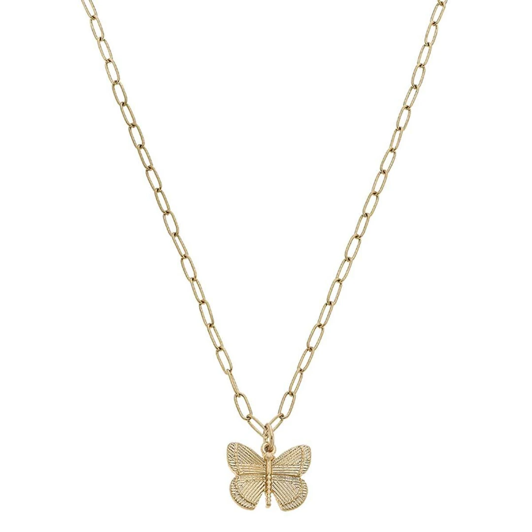 Canvas Celeste Butterfly Charm Necklace Worn Gold