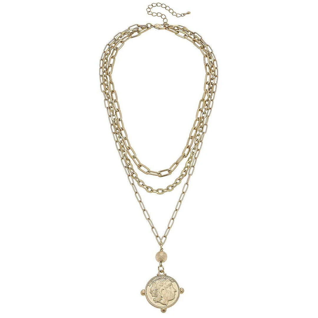 Canvas Evie Layered Coin Necklace Worn Gold