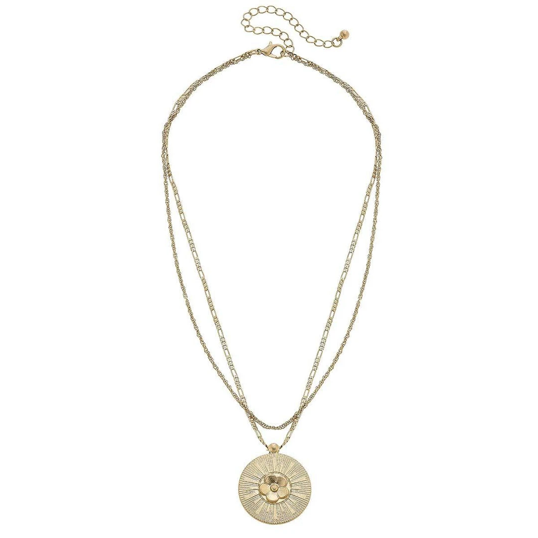 Canvas Flora Layered Flower Pendant Necklace Worn Gold