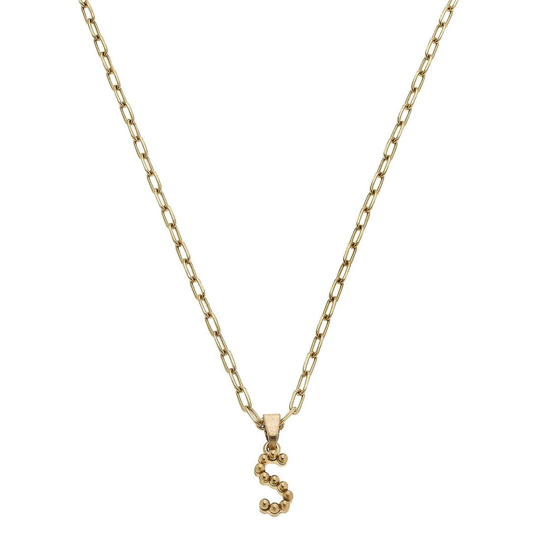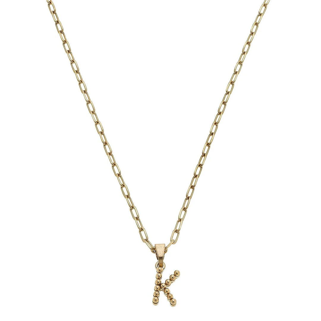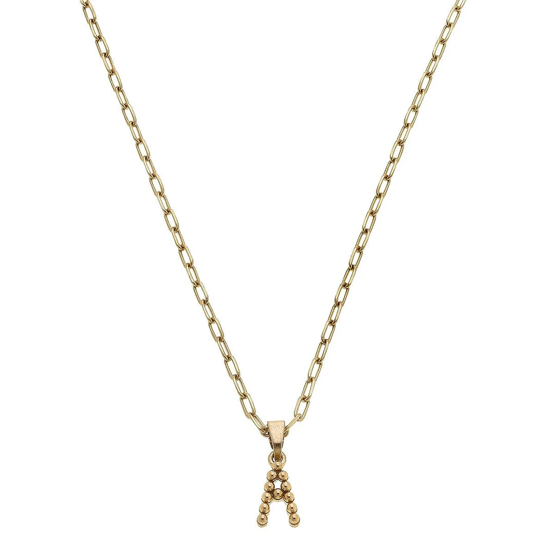 Canvas Layla Ball Bead Initial Necklace Worn Gold