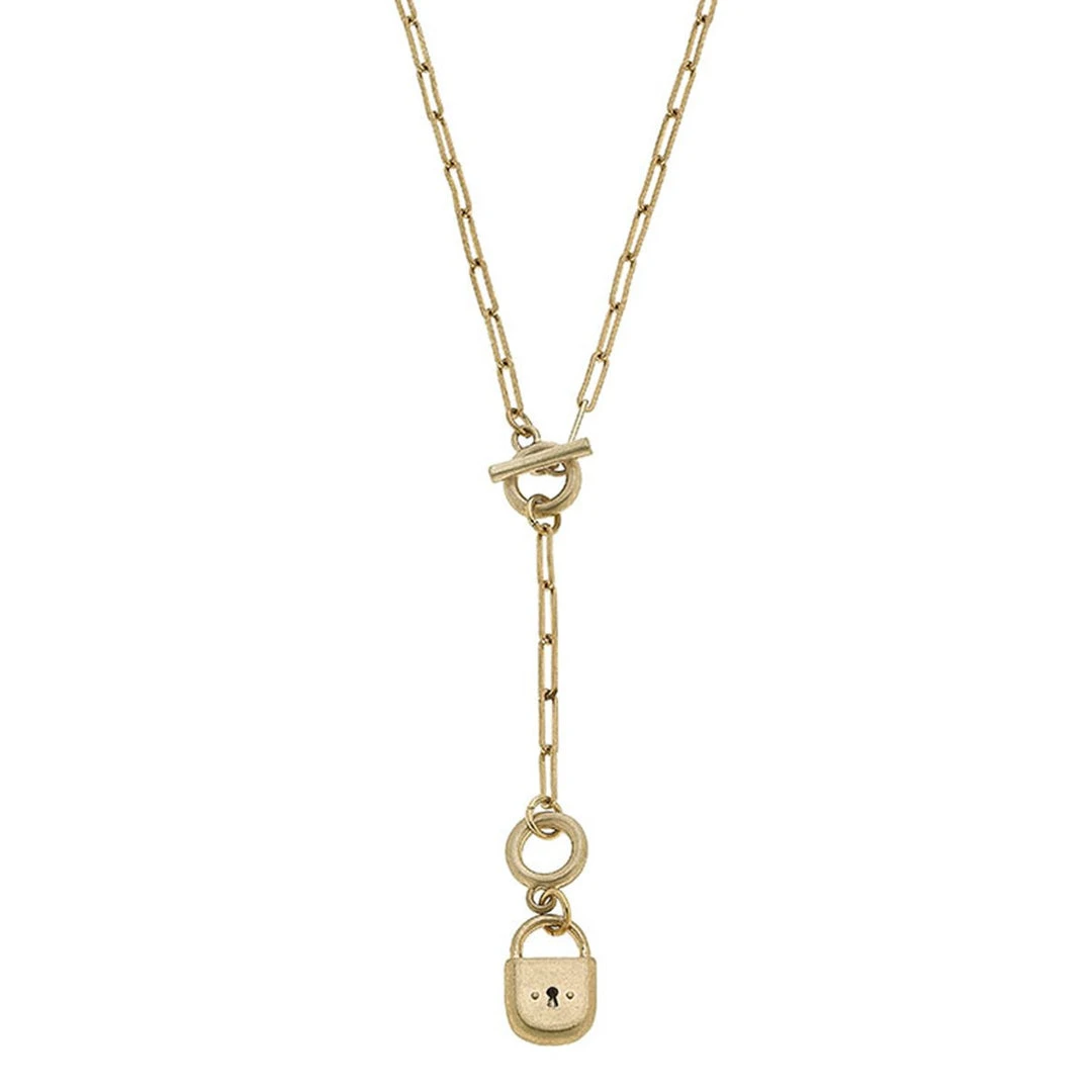Canvas Skylar Padlock T-Bar Y Necklace Worn Gold