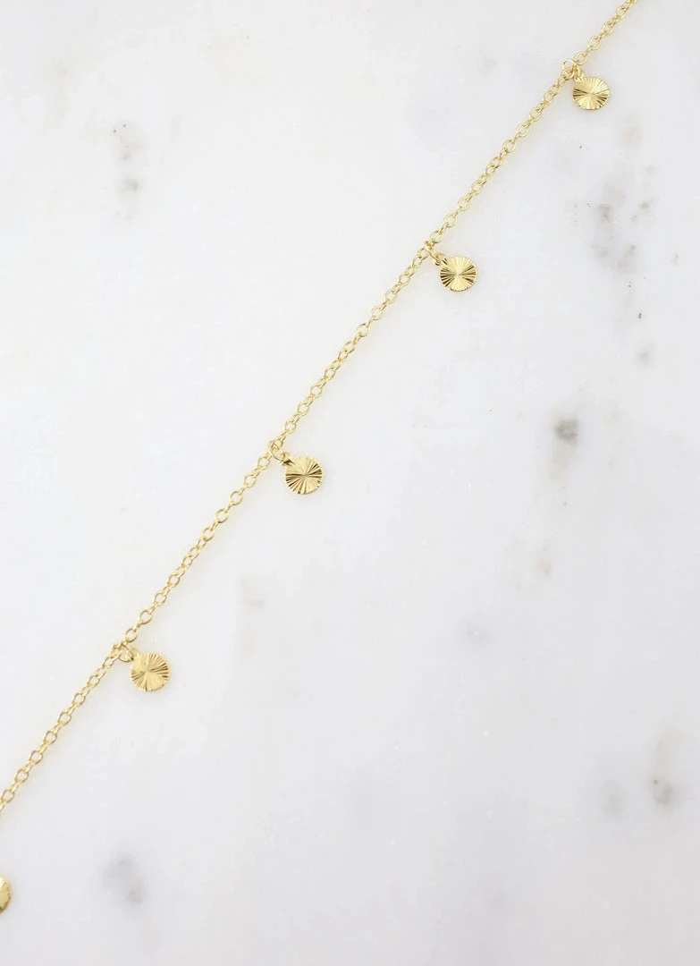 The perfect accessory for summer! This anklet has five accent discs for a great look.