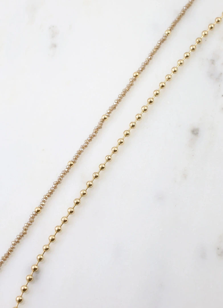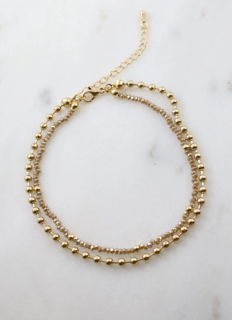 The perfect accessory for summer! This anklet has two layers: one glass beaded and one metal beaded strand.