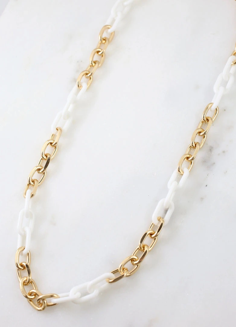 Caroline Hill white and gold link necklace.