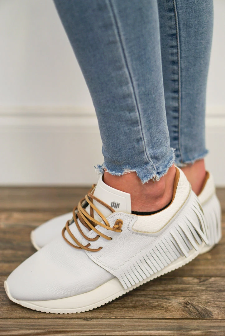 Esseutesse White Leather Fringe Sneakers