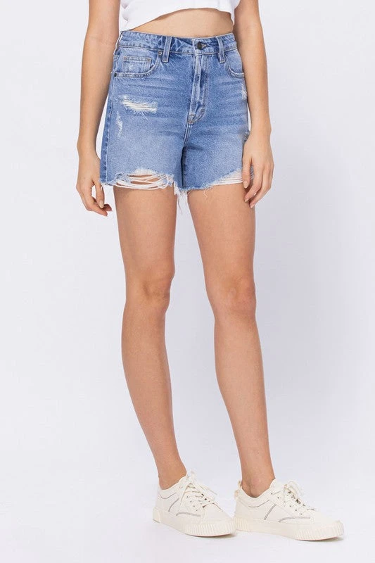 Hidden Jeans Sofie distressed mom shorts.