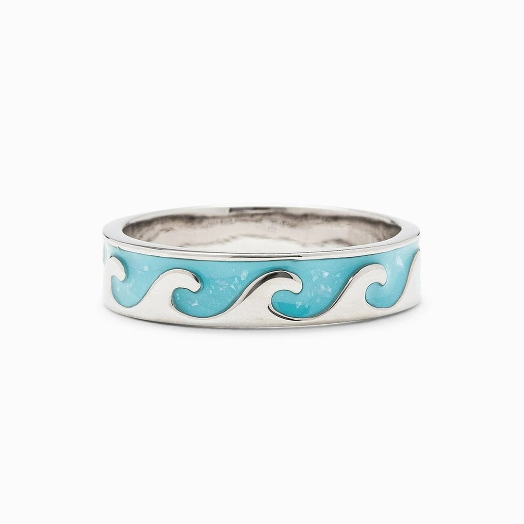 Our Reversible Enamel Wave Ring is a swell surf style. silver with sparkling turquoise enamel —this intricate style features a cresting wave design. Flip it upside down to match your mood or ‘fit.