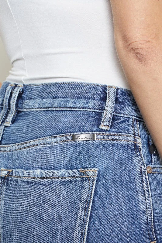 Kan Can High Rise Button Fly Mom Denim Shorts.