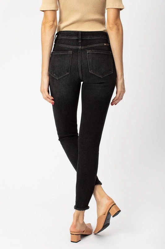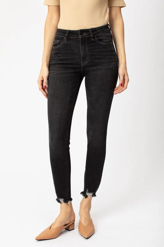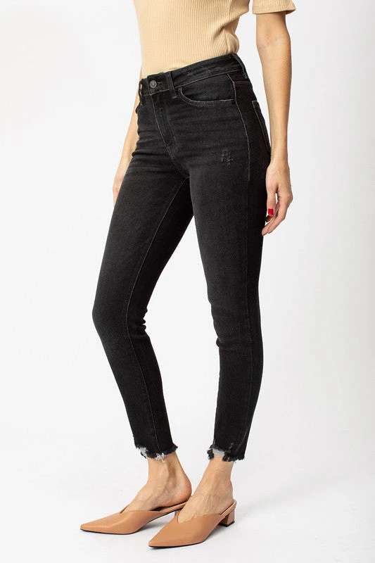 These trendy jeans are such a must-have! We love the timeless washed black color paired with the skinny jean style! These jeans also features a high rise waist and cropped style with distrissing at the hem. It’s so easy to wear this style with a variety of blouses or with layering tanks and classic cardigans!