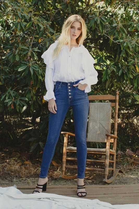 Love these button fly jeans! The super skinny fit with the high rise waistline makes them perfect to wear with all of the trendy cropped sweaters this season! They are as comfy as they are cute, and easy to dress up or down. You’re going to love how they make you feel!