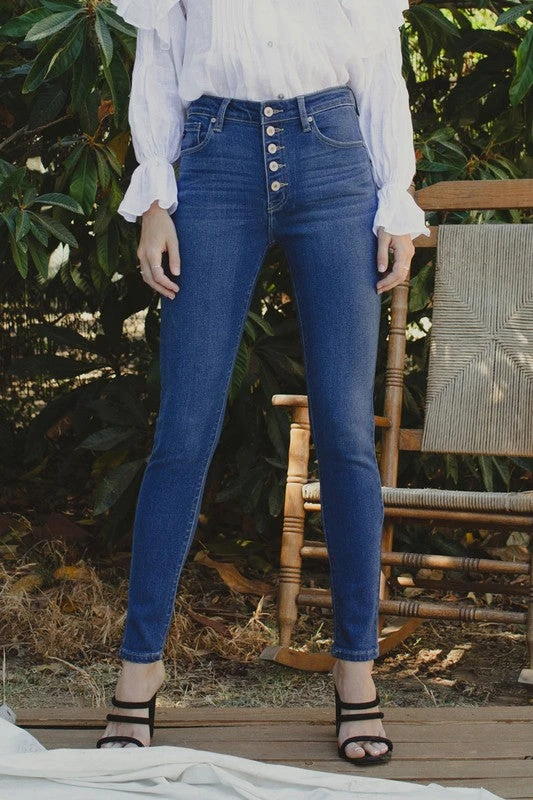Kan Can medium wash high rise button down super skinny jeans