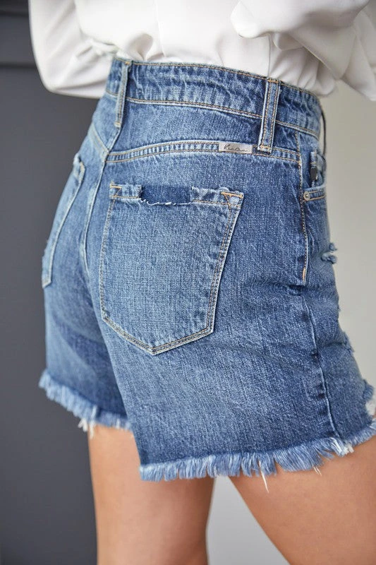 Kan Can high rise girlfriend denim shorts in dark wash
