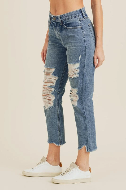 Ladies’ Just Black Denim Destroyed Straight Jeans