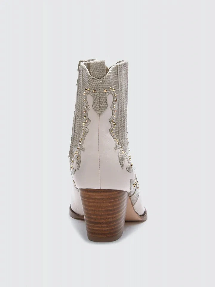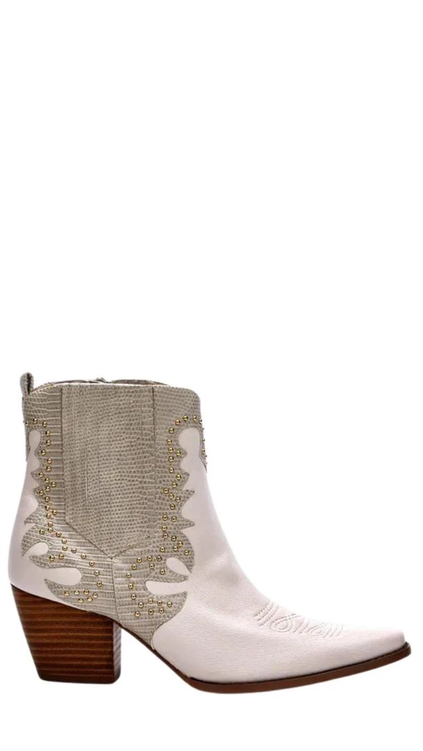 MATISSE Off white western boot with tiny stud detailing is one of our new faves!! You can pair this trendy cowboy bootie with everything all season long.