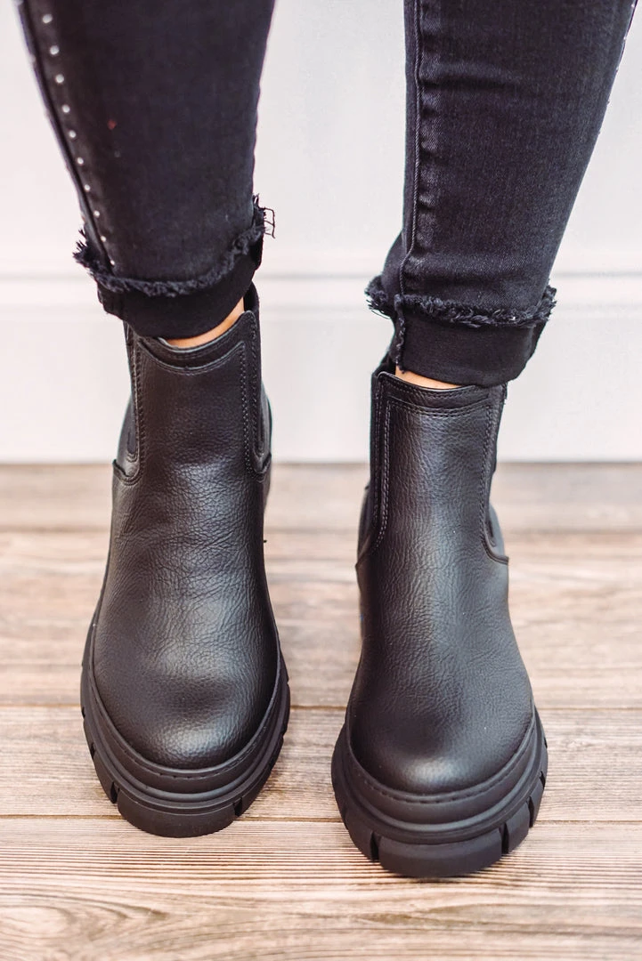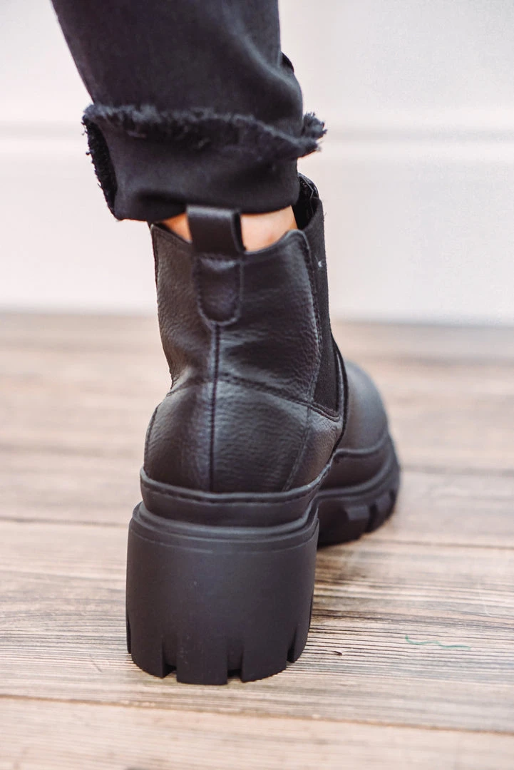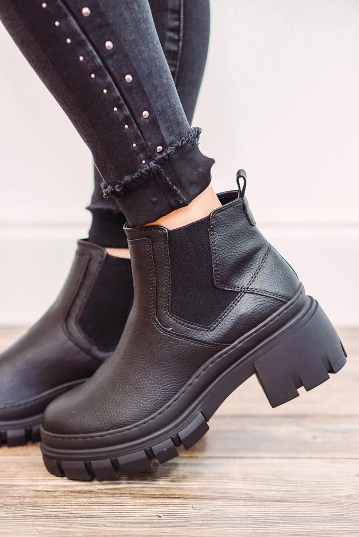 COMFY is the first thing that come to mind with these babes. Featuring a anatomic contoured sole that seriously feels like you’re walking on a cloud! These sassy black leather platform booties pair great with any outfit! These adorable shoes go with everything from jeans to skirts and sweaters. We love the leather like fabric and block heel for a classic combo and comfy fit. It’s one of our faves!