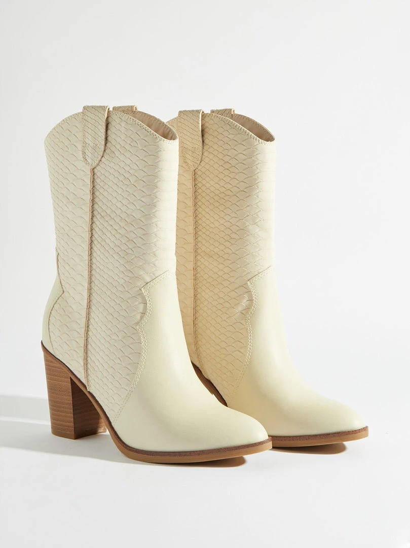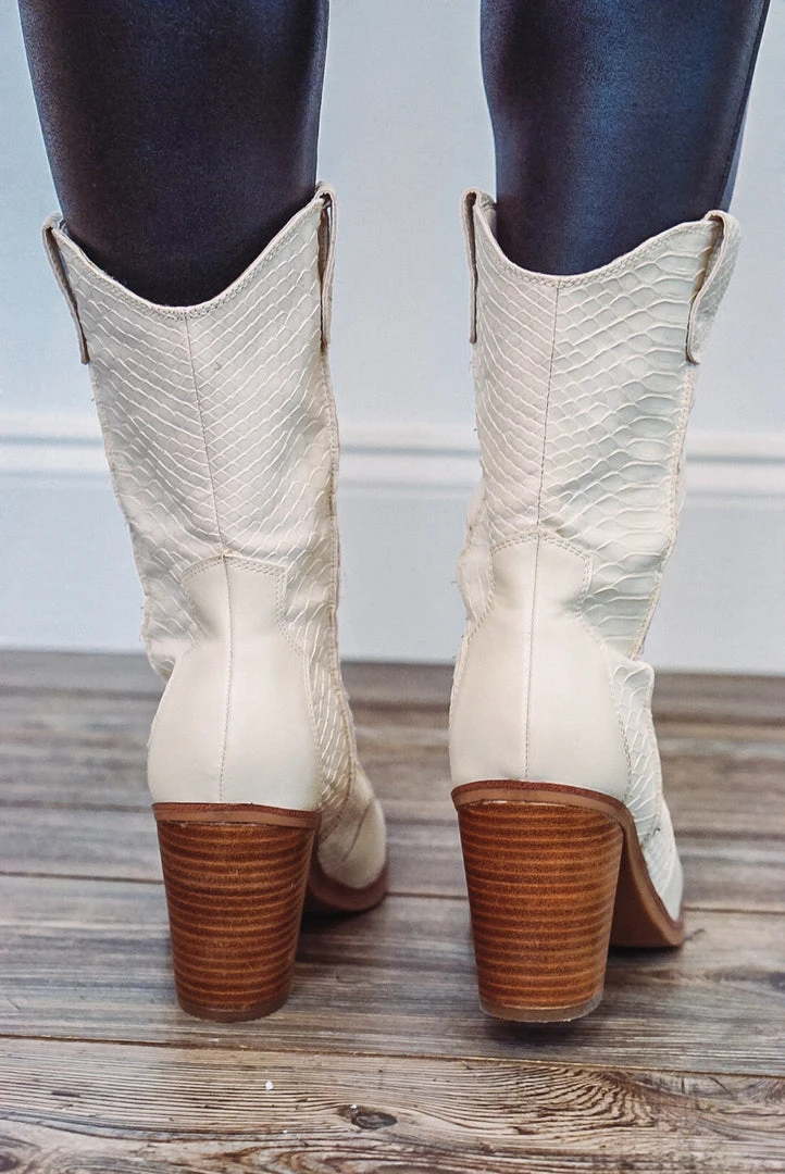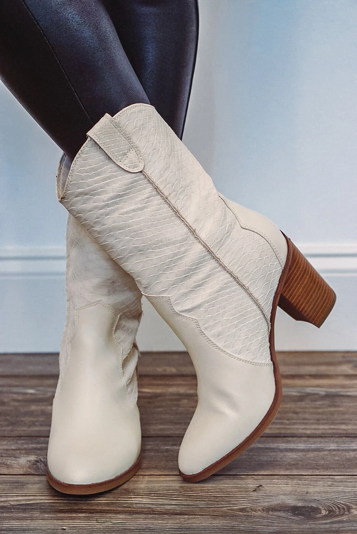 Mia raylyn ivory faux snakeskin texture cowboy boots.