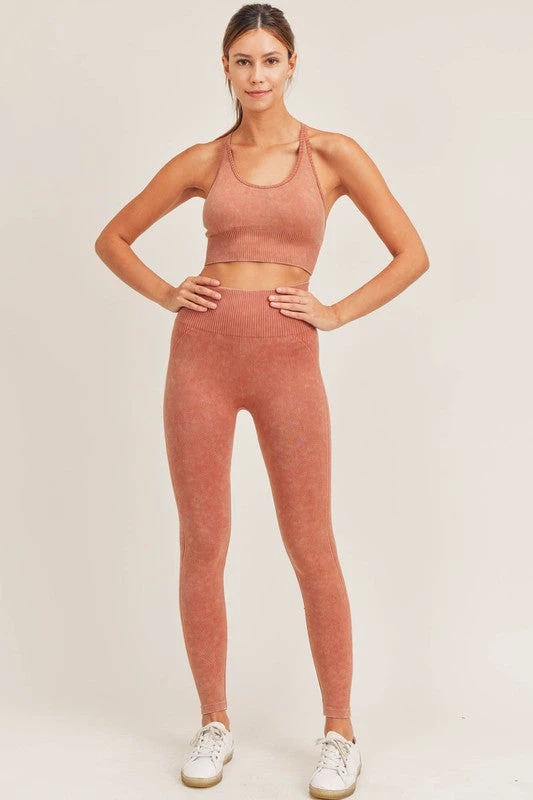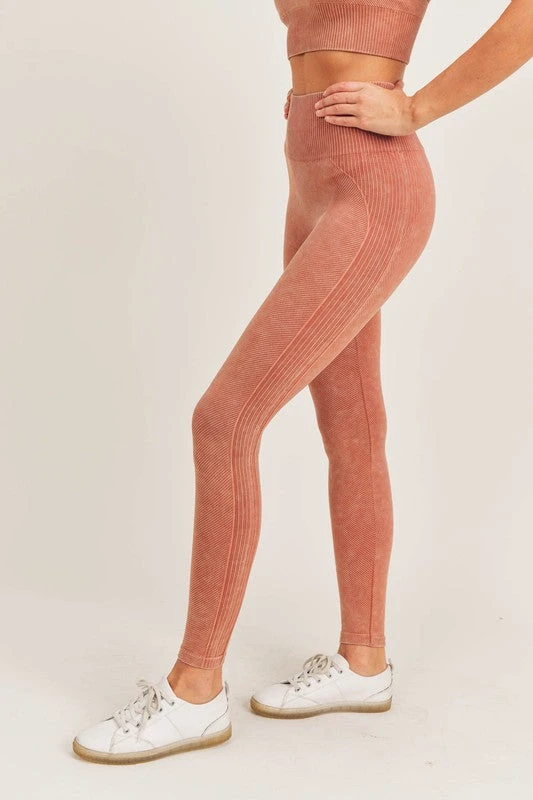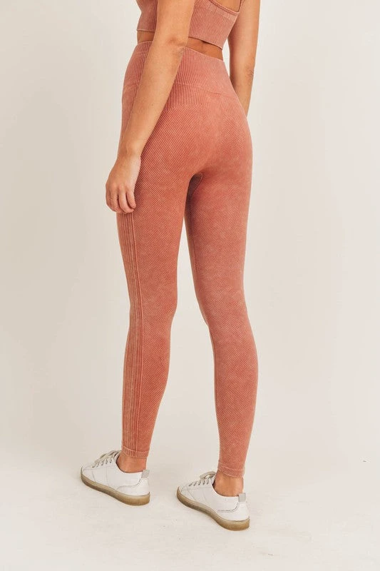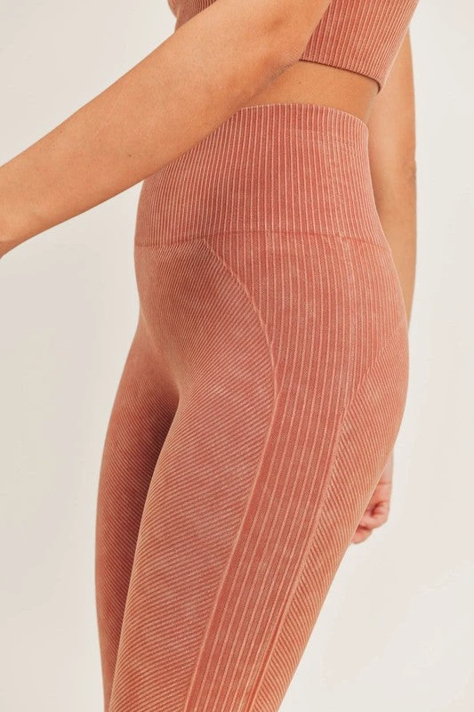 Mono B ribbed high waist leggings in mineral washed mocha mousse