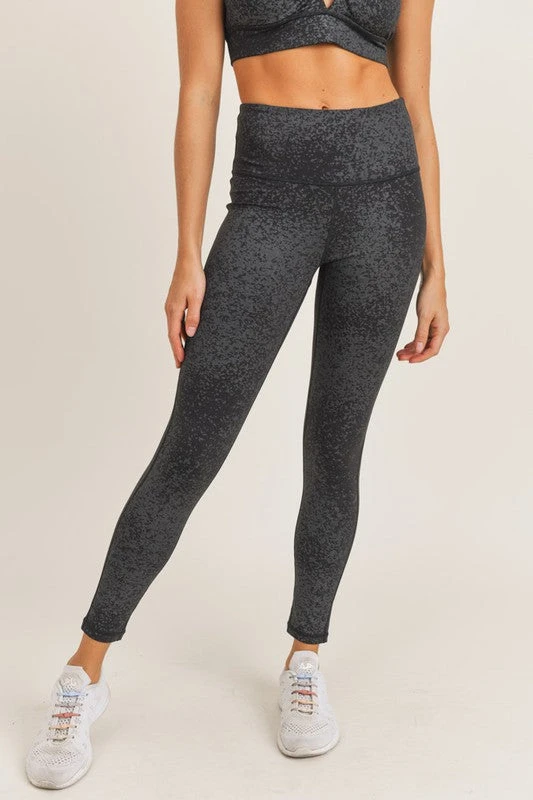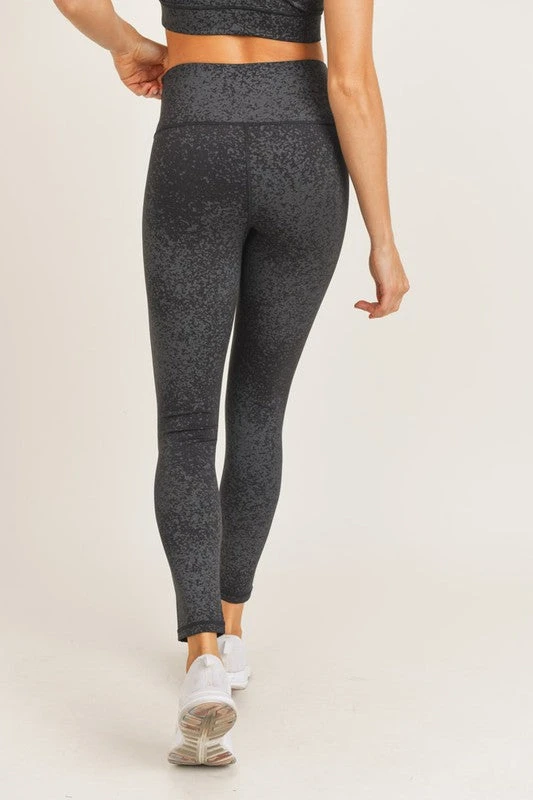 We LOVE our Mono B leggings! This pair features a foil layer in a flake pattern for a unique, almost velvety look. The high rise has a discreet pouch, a perfect fit for your phone. Pair them with the matching flake foil sports bra!