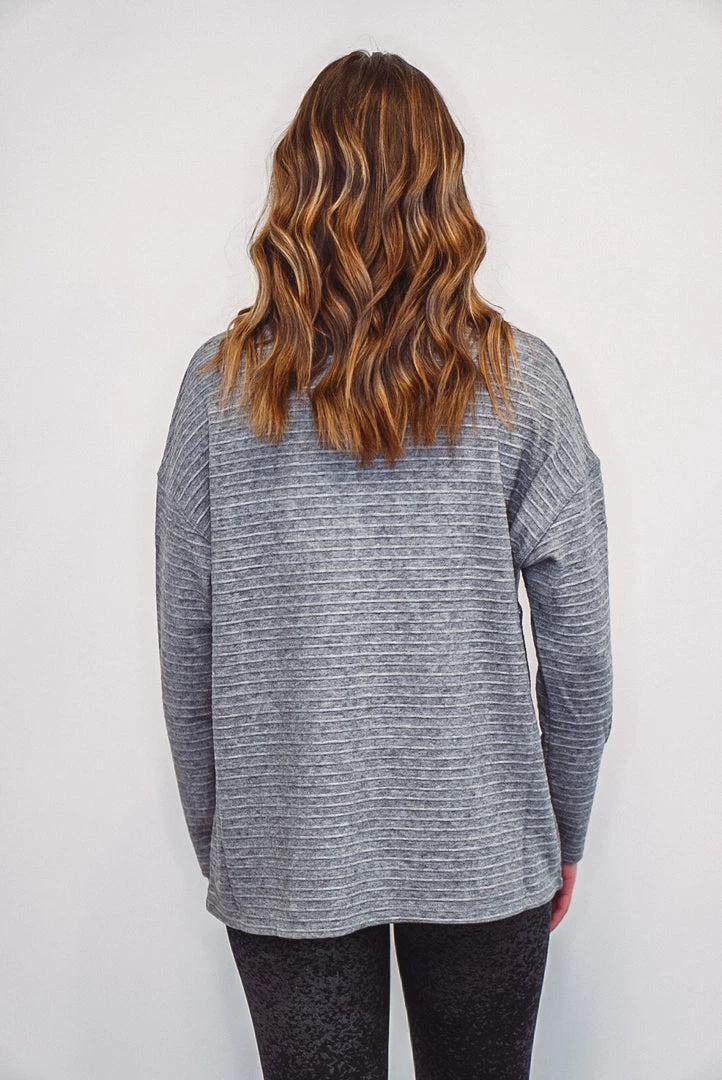 Mono B charcoal grey mock neck striped long sleeve ribbed pullover