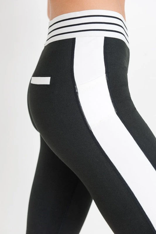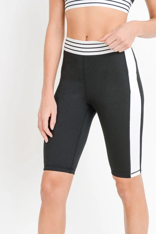 Be a black-and-white delight in these active biker shorts by Mono B! With its flattering white side panels, back pocket with white details, side pockets (perfect size for your phone), and striped elasticized waist band, these shorts are the perfect alternative to leggings. SHOP a matching sports bra HERE!