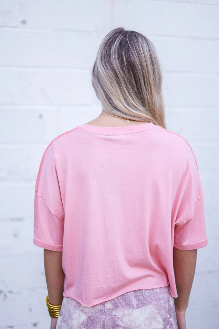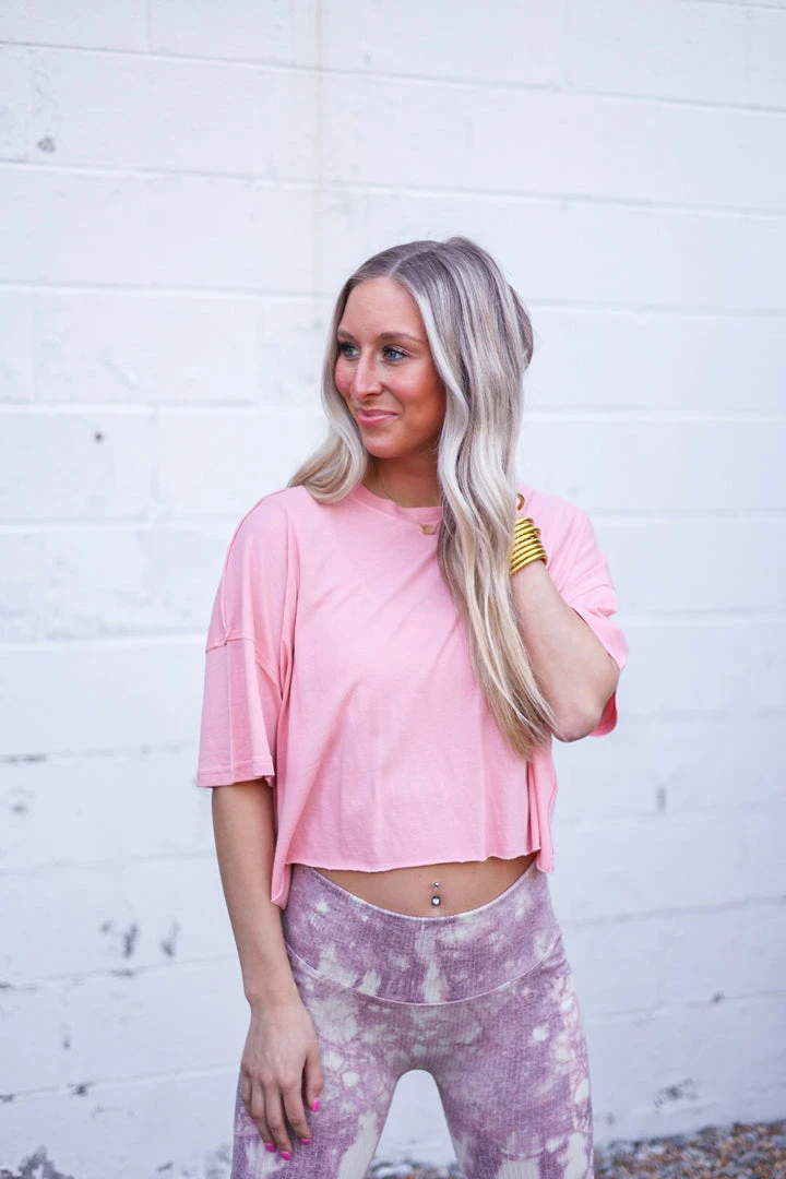 Mono B boxy flow crop athleisure pocket top in coral pink