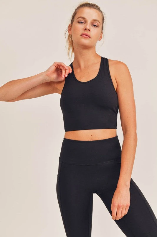 While the front has that classic, round-neck silhouette, the T-racer design on the back really shows off your back (and keeps you cool during even the most rigorous workouts). This top also covers your upper abs for those looking for more coverage.
