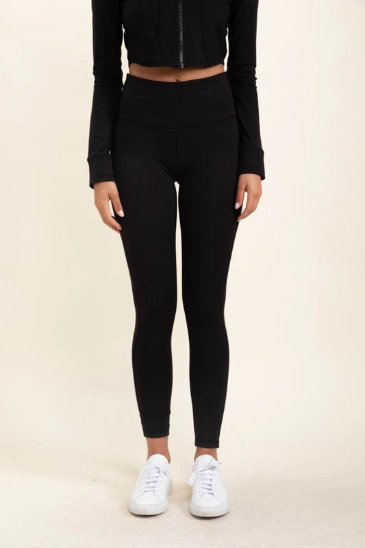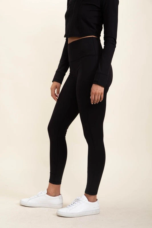 No side pockets, no back zippered pouch, just straight-up, good ol` essential full-length, eco-friendly leggings with the Mono B signature high waistband for abs support. The perfect addition to your personal Mono B collection!