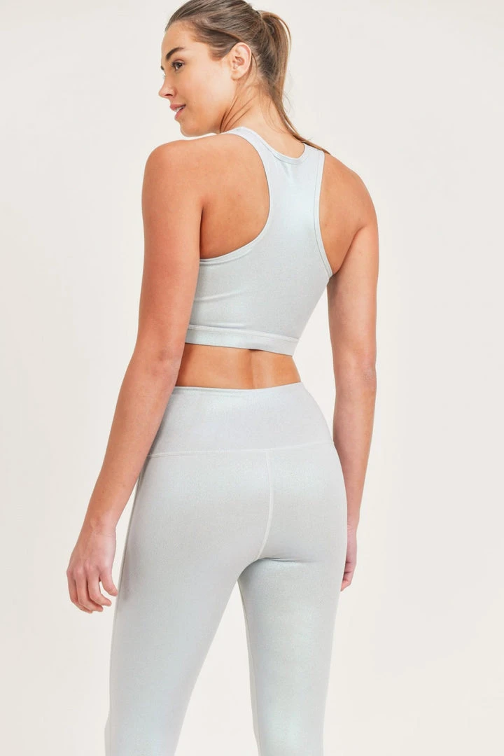 Mono B Iridescent Silver Foil Racerback Sports Bra.