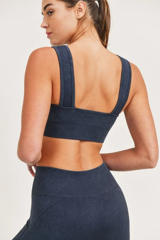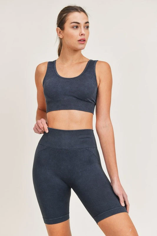 This adorable Mono B sports bra is sure to become one of your favorites! It’s so easy to stay stylish and comfortable while working out, running errands, or just lounging with this lightweight fabric! The fabric moves with you and has a little bit of stretch, too! This sports bra is sturdy enough to handle an afternoon of running, but is chic enough to rock while hanging with friends! Add the matching biker shorts for the perfect look! This seamless hybrid sports bra features an all-over ribbed texture as well as a classic silhouette with a scoop neckline on the front. The bandeau-style on the back is attached to matching wide straps.