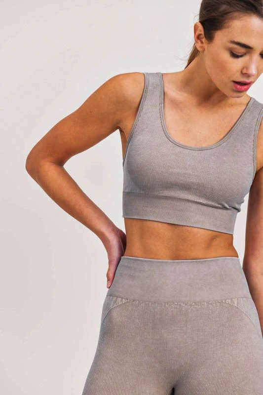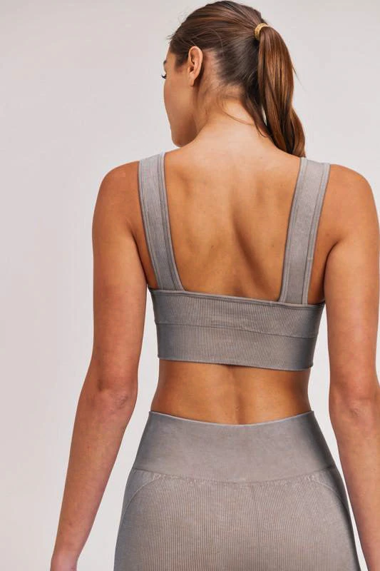 This adorable Mono B sports bra is sure to become your favorites! It’s so easy to stay stylish and comfortable while working out, running errands, or just lounging with this lightweight material! The material moves with you and has a little bit of stretch, too! This sports bra is sturdy enough to handle an afternoon of running, but is chic enough to rock while hanging with friends! Add the matching biker shorts for the perfect look this spring! This seamless hybrid sports bra features an all-over ribbed texture as well as a classic silhouette with a scoop neckline on the front. The bandeau-style on the back is attached to matching wide straps.