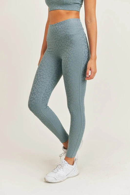 Mono B leopard print jacquard leggings in sea