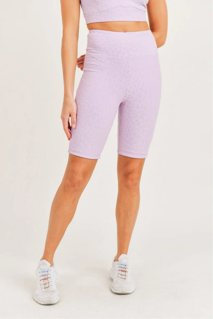 These adorable athletic biker shorts are sure to become one of your favorites! We are loving the lavender color…you’ll show your sass and stand out from the crowd! It’s so easy to stay stylish and comfortable while working out or running errands. Just add a sports bra or a cute tee and sneakers and your set! Made using the Mono B exclusive textured Leopard Jacquard, these biker-length short leggings add an extra oomph to your animal print collection. Keep your activities hands-free with the discreet phone pouch on the waistband. The inner lining ensures your comfort and security when moving. SHOP the matching sports bra HERE!