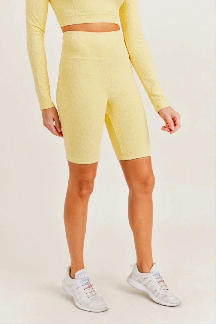 Mono B yellow lemonade leopard jacquard biker shorts.