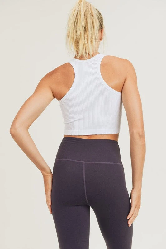 Constructed using ribbed, four-way stretch fabric, this crop tank top is extremely versatile. Pair it with your Mono B activewear for a workout class, or with jeans for an urban-chic look. Super cute either way!