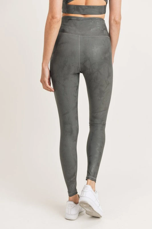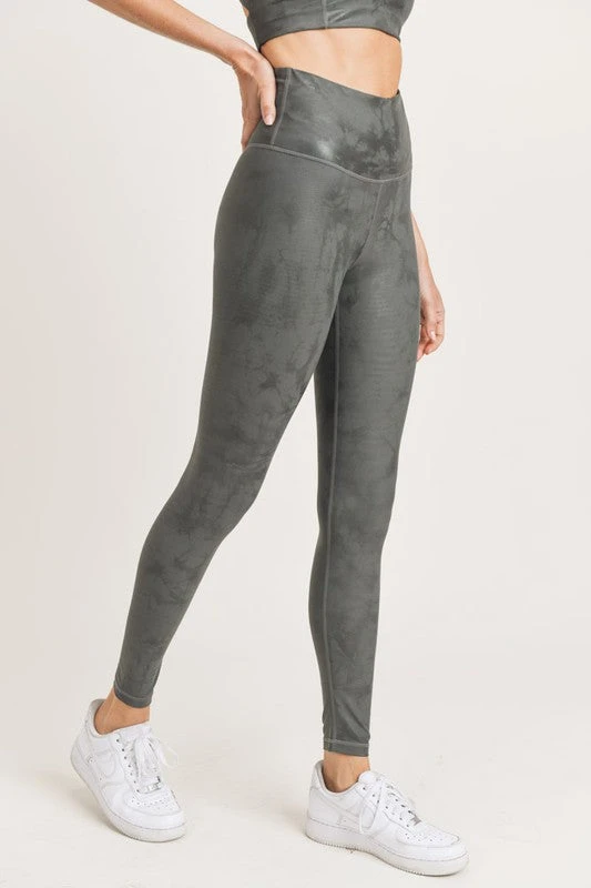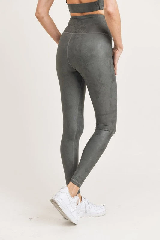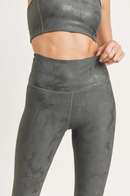Mono B overlay metallic foil print high waist leggings in gun metal