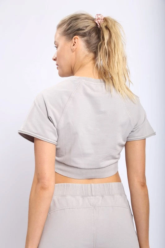 This cropped tee is comfy enough to lounge in, and chic enough to wear out. It has rolled edges on the raglan sleeves and darts that bring in the waist for a flattering silhouette. The perfect addition to your Mono B collection! Shop the matching shorts here!