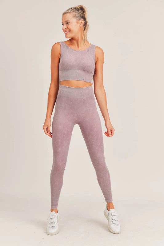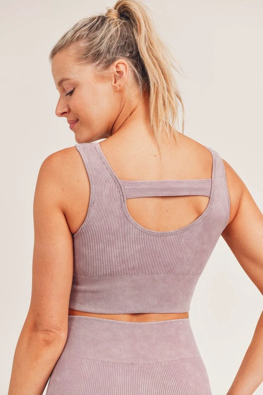 Mono B mauve cut out mineral washed seamless hybrid sports bra