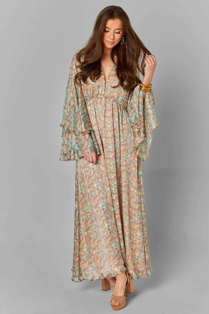 A floor-skimming easy maxi in our new Boca print. This silhouette features a deep v neck, bell sleeves and an empire waist for a flattering fit. The Colette is the perfect dress for brunch with friends or an afternoon picnic.