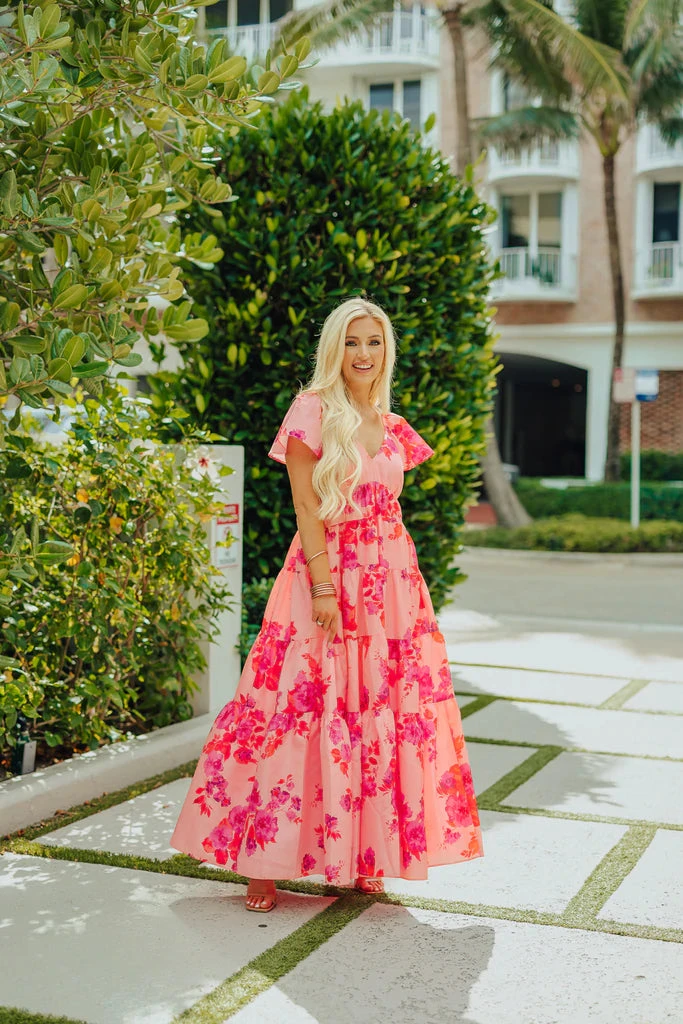 Looking so good has never been so easy with the Jules dress! Featuring a v neckline, short flounce sleeves, pockets, and flowy tiered layers. This babe is perfect for all of your upcoming special summer events! Colors: light pink, dark pink, magenta and orange.