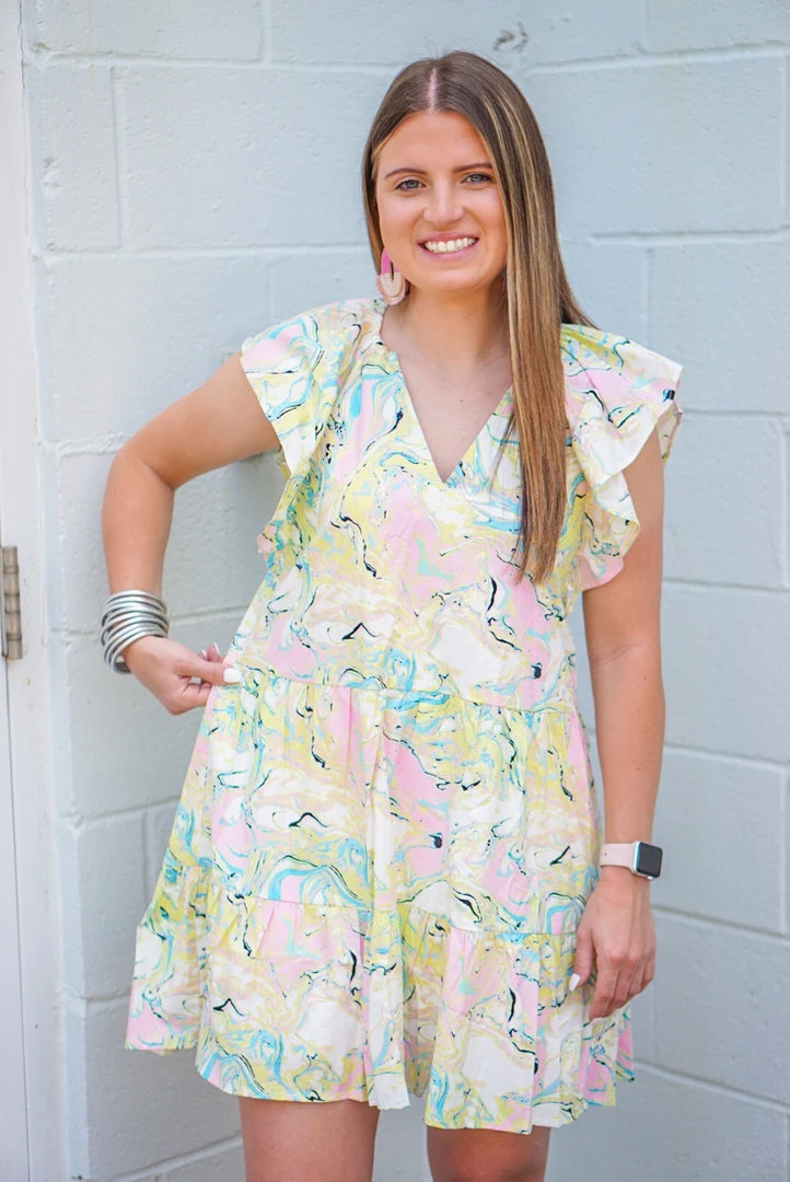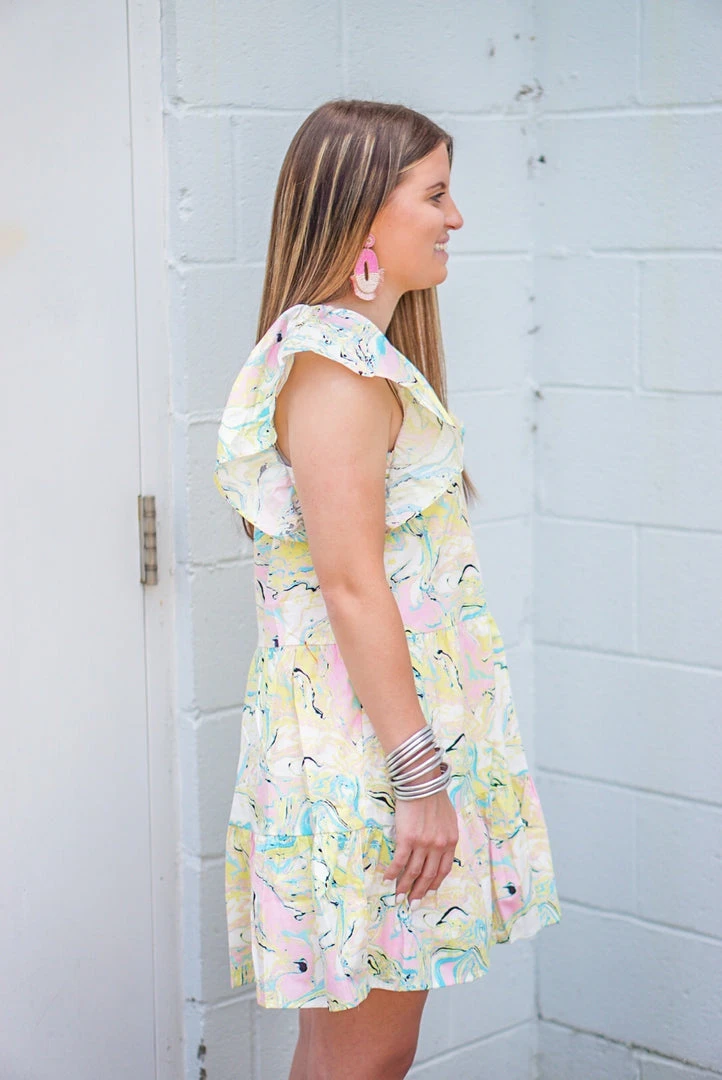 Buddy Love Ronnie mini dress in citron marble