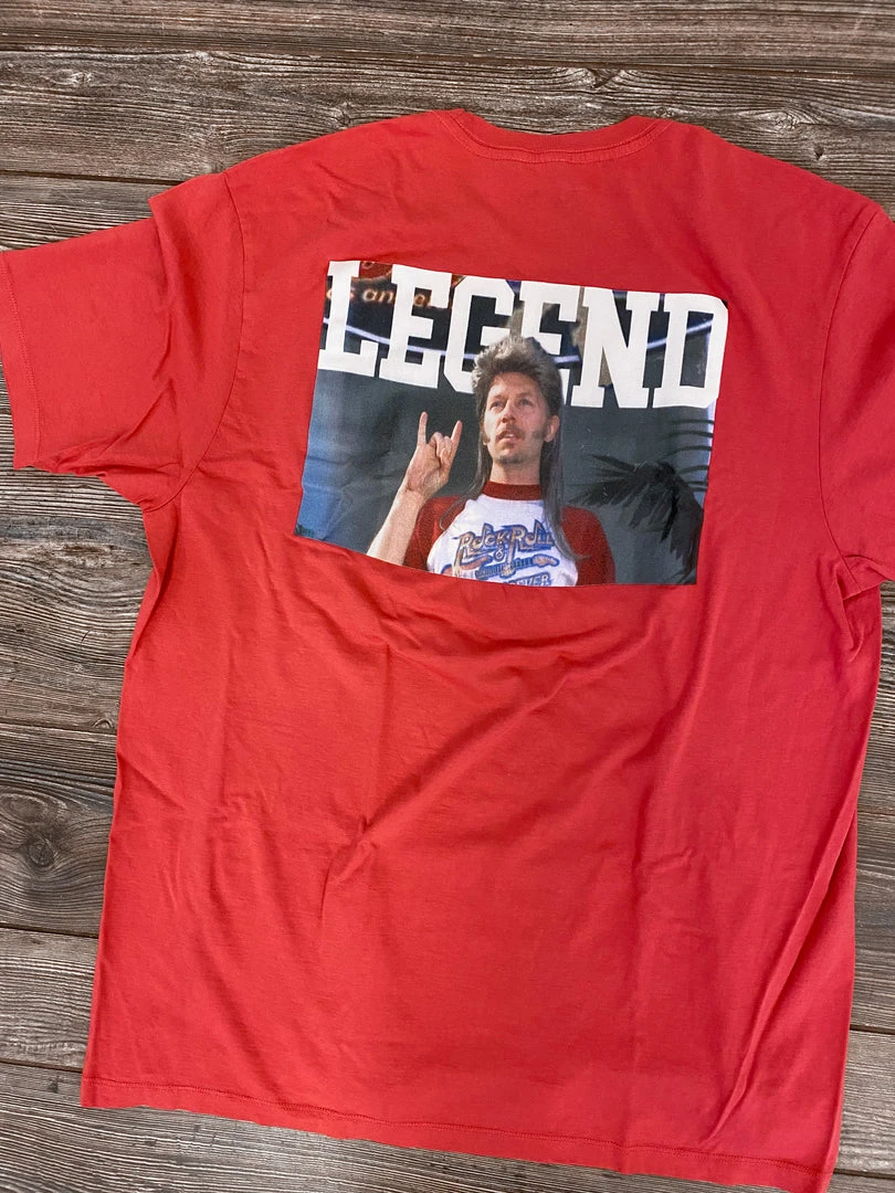Joe Dirt….. the Legend! Short sleeve t shirt, with pocket tee and crew neck.