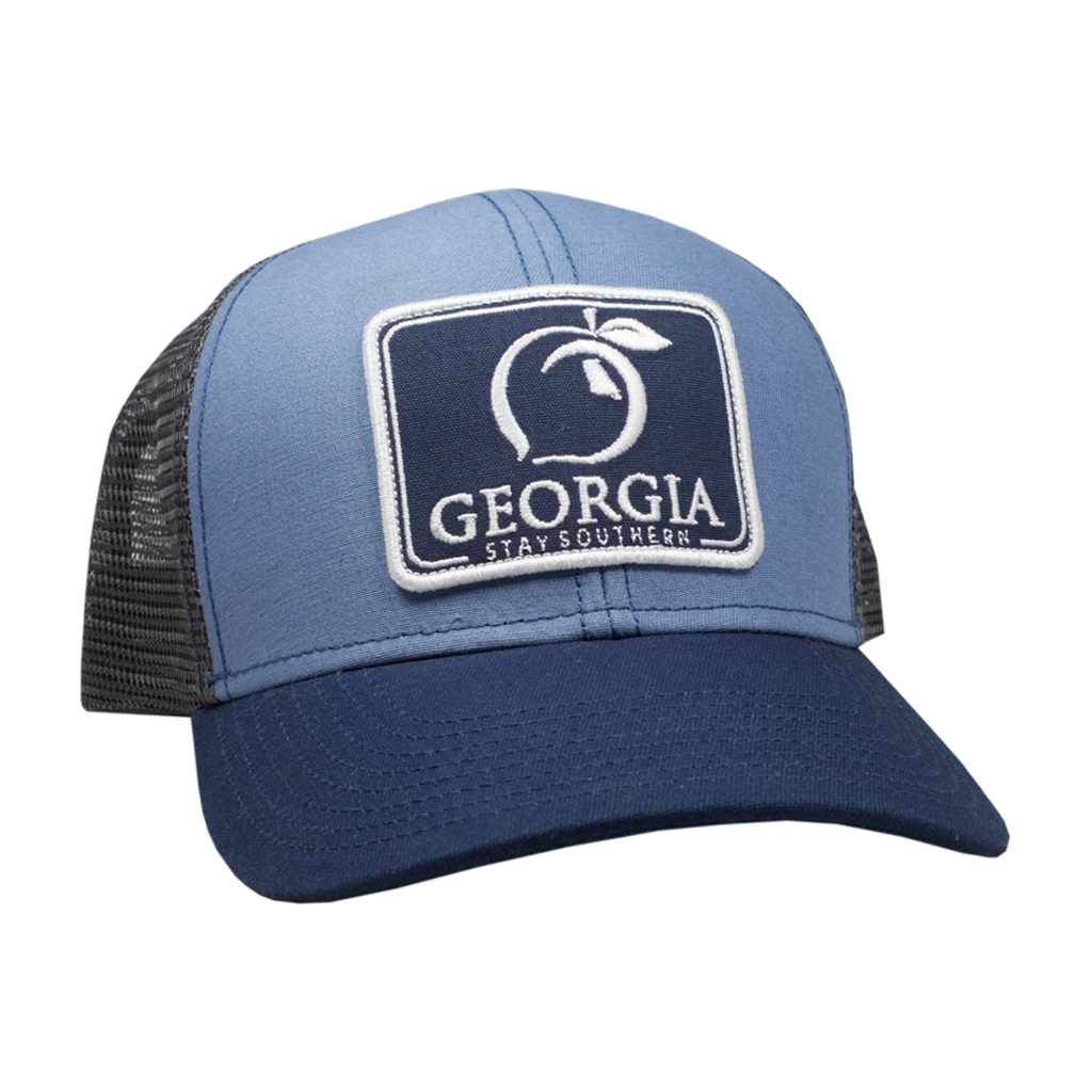 Peach State Pride ‘Georgia Patch’ Mesh Back Trucker Hat- Navy/Lake Blue