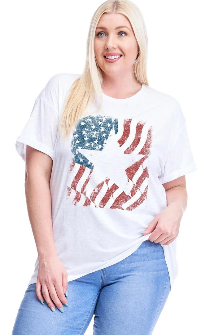 Plus size American white burnout graphic tee.