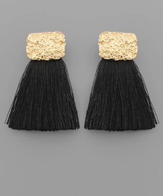 Wedding season is here – these classy earrings will pair perfectly with your new fall dress! Earrings feature a classic black color and gold textured design. Available in 3 colors here!