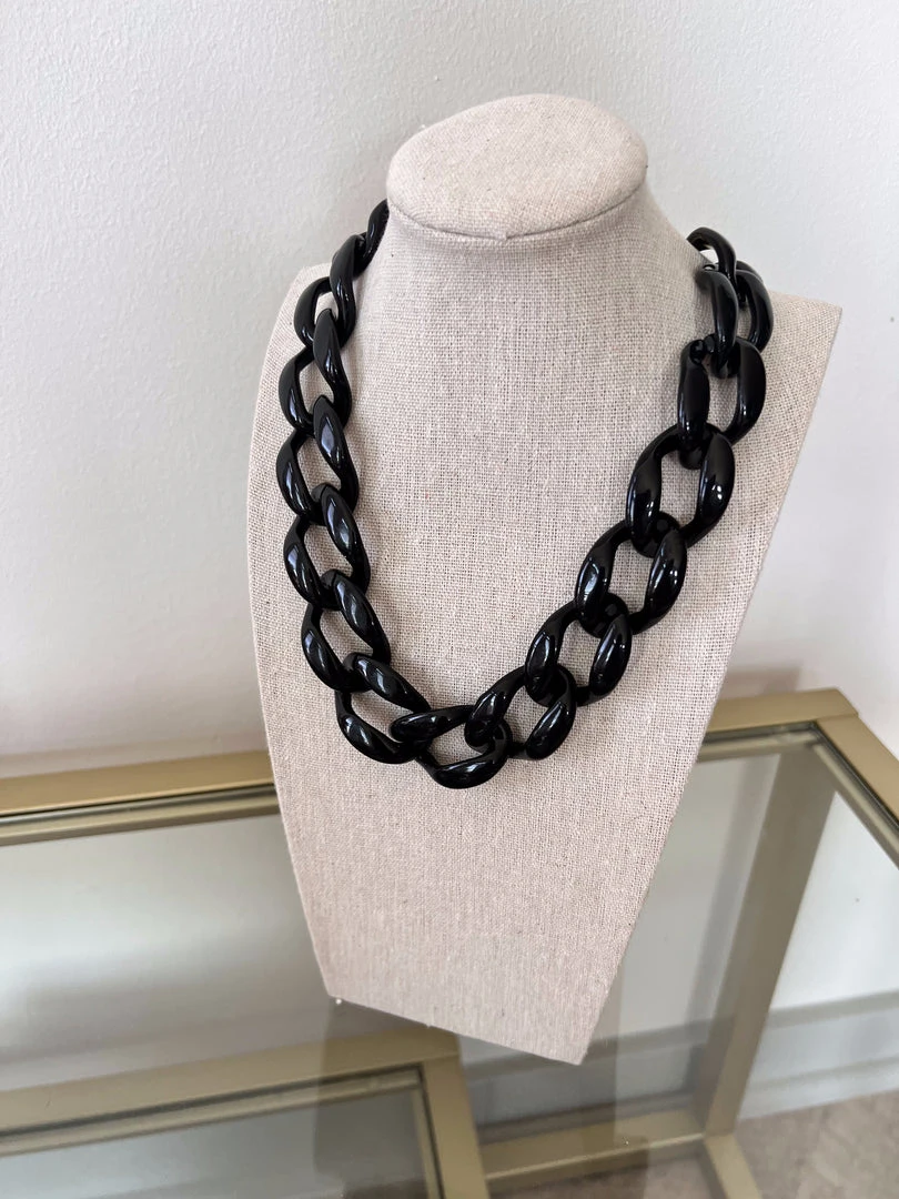 This retro babe is so fun! Acrylic chain necklace in black, hypoallergenic, and lightweight. Love, love, love!!