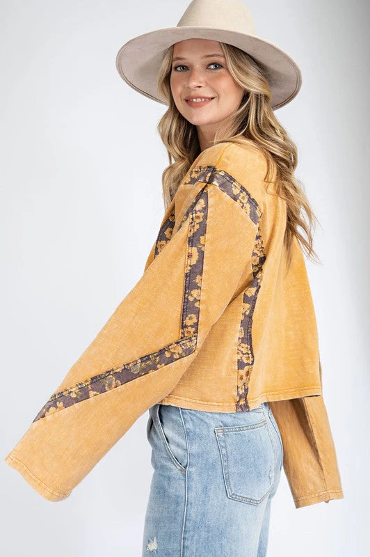Women’s mineral washed mustard long sleeve cropped top